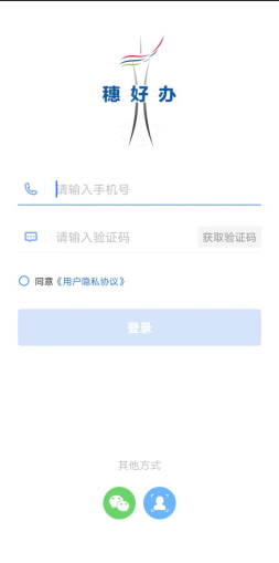 第一步:申请人进入“穗好办”APP登录验证,输入“手机号、验证码”、点击“同意用户隐私协议”,或选择“微信、人脸识别”其他方式快捷登录验证身份。