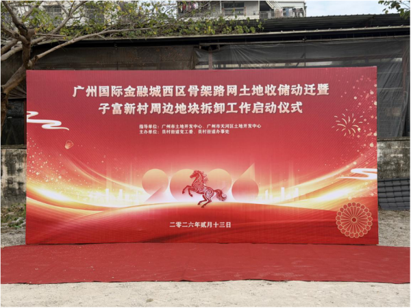 2026年2月13日,广州国际金融城西区骨架路网土地收储动迁启动仪式在广州市天河区员村二横路西侧、子富新村南地块顺利举行,标志着广州国际金融城西区土地收储工作取得重大突破,广州国际金融城西区花城大道、员村二横路“十字形”骨架路网建设工作迈上新台阶。