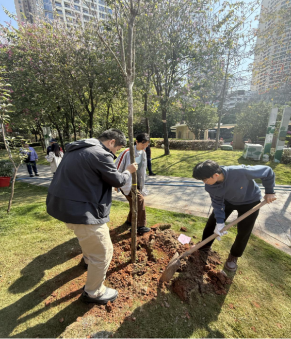 活动现场春意盎然、氛围热烈。党员干部精神饱满、干劲十足,大家分工协作、配合默契,挖坑、栽苗、浇水,一道道工序规范有序、一丝不苟。一株株黄花风铃木迎风挺立,为城市核心地标增添盎然生机与靓丽风景。党员们以实际行动践行生态保护责任,让 “党建红”引领“生态绿”,成为春日里一道动人风景线。此次植树活动,既是一次生动的生态文明实践,也是一次凝聚合力的党性教育。活动进一步厚植了城区绿色基底,激发了市民群众爱绿、植绿、护绿、兴绿的行动自觉,为提升城市生态品质、营造绿色宜居环境注入强劲动力。