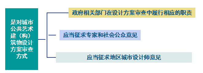 (三)第四条明确了政府有关部门在推动城市公共艺术建设发展中的职责,管理职责范围包括城市公共艺术建(构)筑物的规划、设计、建设实施等。