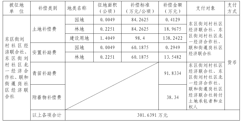 三、被征地村及面积:广州市黄埔区东区街刘村社区经济联合社、东区街刘村社区北一经济合作社、联和街暹岗社区经济联合社属下集体土地1.6349公顷(合24.5235亩),其中园地0.0049公顷(合0.0735亩),林地0.2251公顷(合3.3765亩),建设用地1.4049公顷(合21.0735亩)。