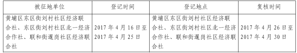 (二)本次征收土地所涉及的被安置农业人员由广州市黄埔区东区街刘村社区经济联合社、东区街刘村社区北一经济合作社、联和街暹岗社区经济联合社以货币补偿的形式安置。请广州市黄埔区东区街刘村社区经济联合社、东区街刘村社区北一经济合作社、联和街暹岗社区经济联合社在本公告期内到广州市开发区黄埔区国土资源和规划局领取办理安置农业人口征地农转非手续的函件。