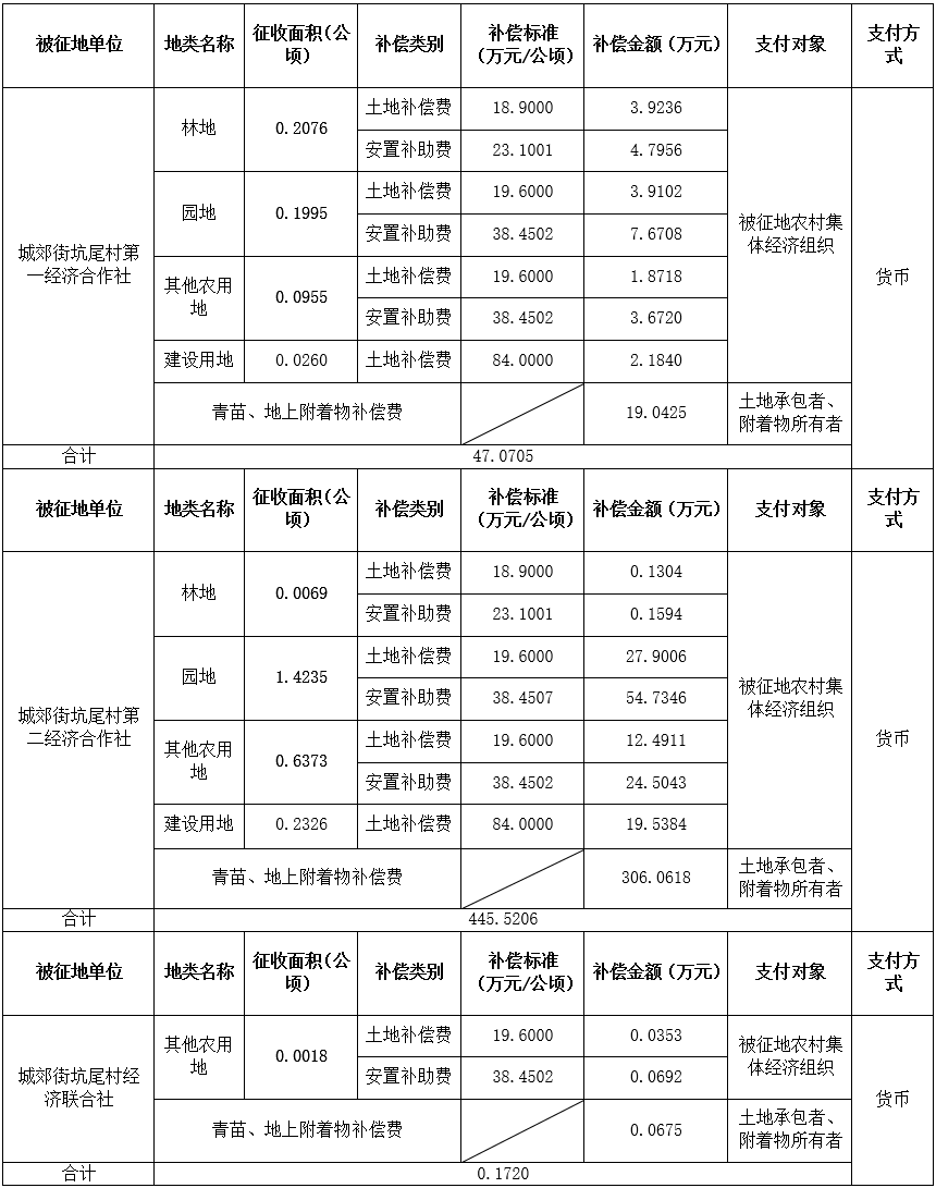 (二)本次征收土地所涉及的被安置农业人员由广州市从化区城郊街坑尾村第一、第二经济合作社、坑尾村经济联合社以货币补偿等形式安置。