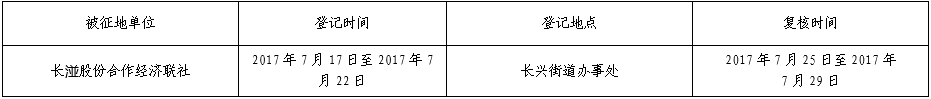经广东省人民政府批准(粤国土资(建)字〔2017〕92号),同意将天河区长兴街长湴股份合作经济联社属下1.3211公顷集体土地征收为国有土地。现将经依法批准的《征收土地方案》、市人民政府批准的《征地补偿安置方案》内容和有关事项公告如下: