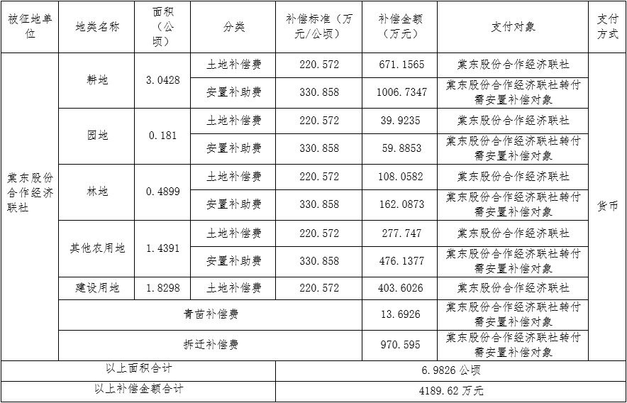 2.棠下街棠东股份合作经济联社征地补偿: