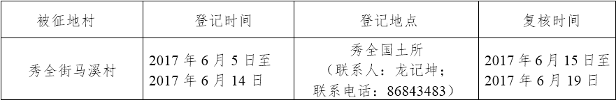 经省人民政府批准(粤国土资(建)字〔2017〕231号文),需将广州市花都区秀全街马溪村属下的集体土地6.5223公顷(合97.8345亩)征收为国有土地。现将经依法批准的《征收土地方案》和市人民政府批准的《征地补偿安置方案》内容和有关事项公告如下: