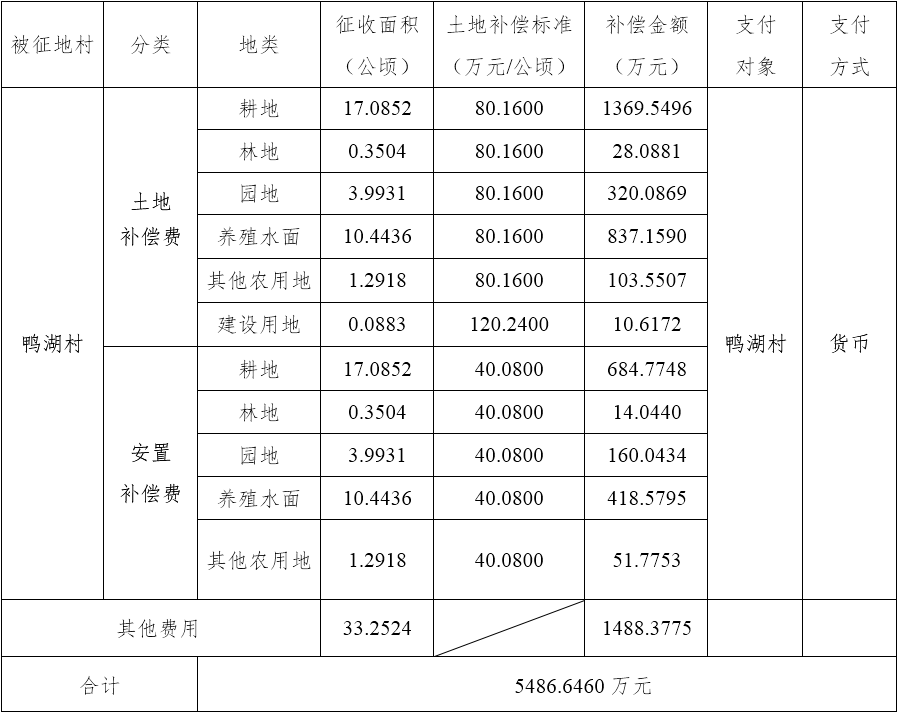 四、征地补偿安置方案: