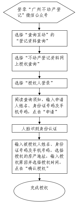 3.权利人线上授权后,被授权人可以通过“广州不动产登记”微信公众号的“不动产登记资料网上授权查询”功能,选择“被授权人登录”方式,实时查询被授权房产的不动产登记详细信息。