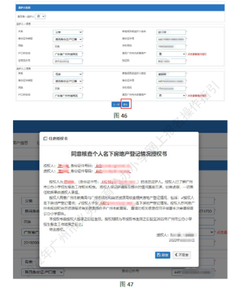 广州推行不动产登记信息共享查询机制,家长填写完整“广州市义务教育学校招生报名系统”中的“监护人信息”环节信息,同意授权查询名下房产登记情况后,教育部门可通过市规划和自然资源提供的共享接口核查房产登记信息的,原则上无需家长另行查询及提交房产证明信息。