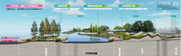 如何在“退堤”的同时保障“安澜”?项目设计构建了“宽滩-生态堤-后方缓冲带”的三维立体生态防御体系,实现了从刚性对抗向柔性消浪的转变,筑牢城市及其腹地的安全屏障。这种韧性设计不仅能够有效应对200年一遇的洪潮冲击,还通过“看不见的堤防”设计手法,将水利工程隐匿于自然景观之中,实现了“防浪防潮”与“城海共生”的有机统一,为大湾区韧性海岸建设提供了“广州样本”。