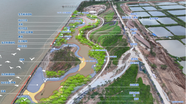 项目通过打破堤围即破除原有的养殖围堰,将堤身主体结构整体后移200米,主动为滨水区域释放核心生态空间,打破陆海分割的刚性边界,重塑富有弹性的滨海生态带。这一“退”一“还”之间,不仅是对物理空间的重塑,更是对海岸带生态系统服务功能的系统性恢复,实现了从“防御海洋”到“拥抱海洋”的范式跨越。