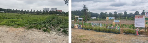 该地块原本是一块撂荒的耕地,现场杂草丛生,在“人民设计师”的共同努力下,蜕变为充满生机的农园,并划分了每块面积约20平方米、共155块的份地菜园用于认领,规划了公共种植区域用于农园研学实践、美育创作等特色活动。