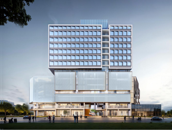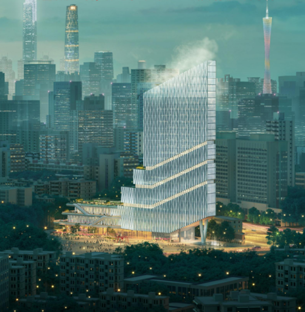 本项目位于广州市越秀区区庄立交桥东侧,原址现为广东道餐厅、新渝城餐厅、弘扬羽毛球馆及快捷酒店等多栋低效利用物业。改造工程将对原有建筑进行整合设计,以“山水叠台,都市绿舟”为设计理念,打造集商业、酒店等功能于一体的TOD综合体,构建开放共享、服务周边的邻里型城市客厅,有效推动区域物业转型升级与产业能级提升。目前,融通广场项目已完成环艺委审议与批前公示等前期工作。