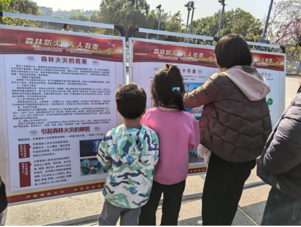 活动现场,工作人员利用展板图解、横幅标语等向过往市民重申森林防火“十不准”及“五头一口”管控要求,普及《中华人民共和国森林法》等法律法规,引导大家自觉抵制野外违规用火行为。图文并茂的展板前吸引了不少市民驻足观看,不少家长带着孩子认真阅读内容,工作人员结合典型案例提醒市民在林区、景区严禁携带火种、严禁吸烟,共同守护森林资源。