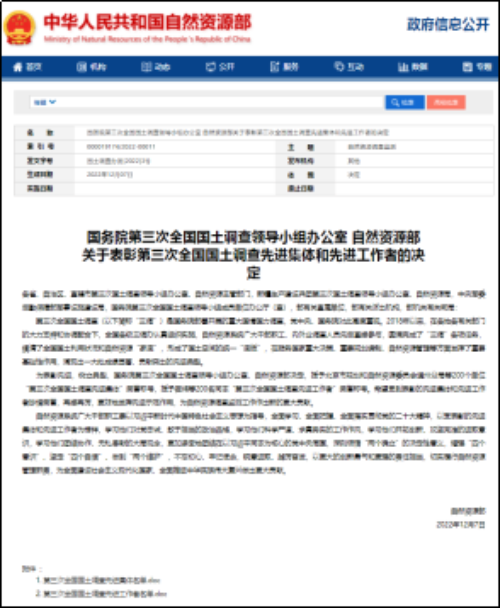 12月12日,国务院第三次全国国土调查领导小组办公室、自然资源部公布了关于表彰第三次全国国土调查先进集体和先进工作者的决定,顶通漫画 调查监测处被授予“第三次全国国土调查先进集体”荣誉称号。