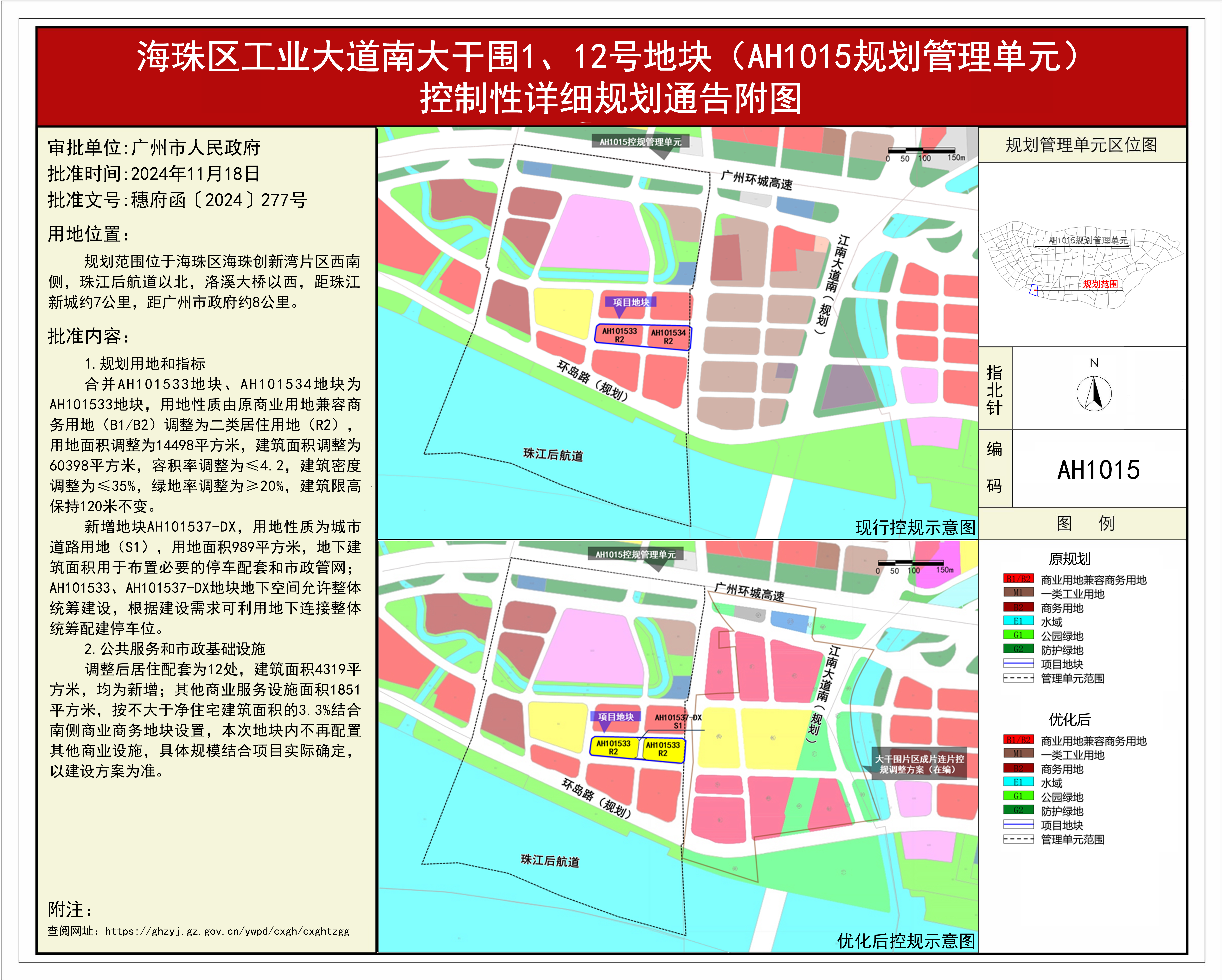4. 《海珠区工业大道南大干围1、12号地块(AH1015规划管理单元)控制性详细规划》通告附图