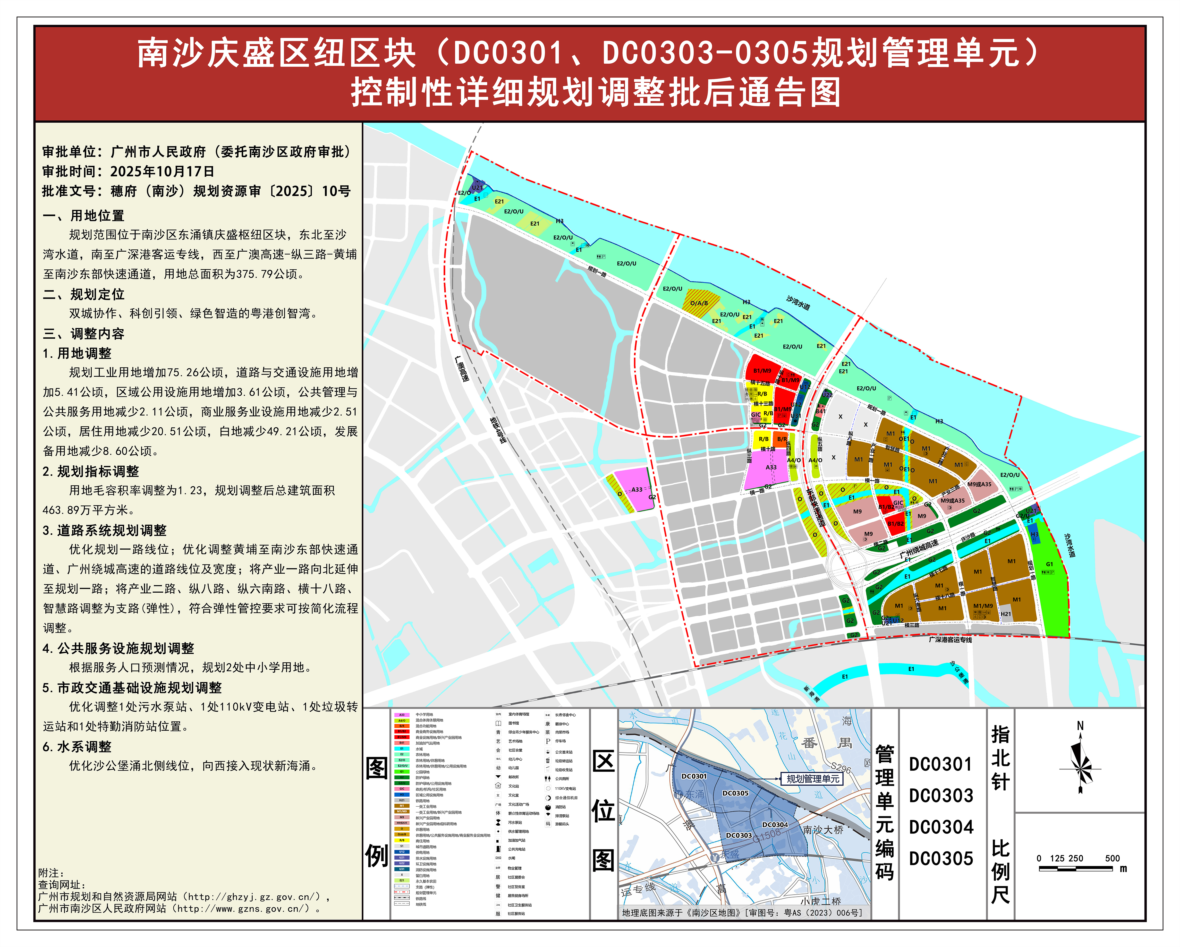 附件:南沙庆盛枢纽区块(DC0301、DC0303-0305规划管理单元)控制性详细规划调整批后通告图