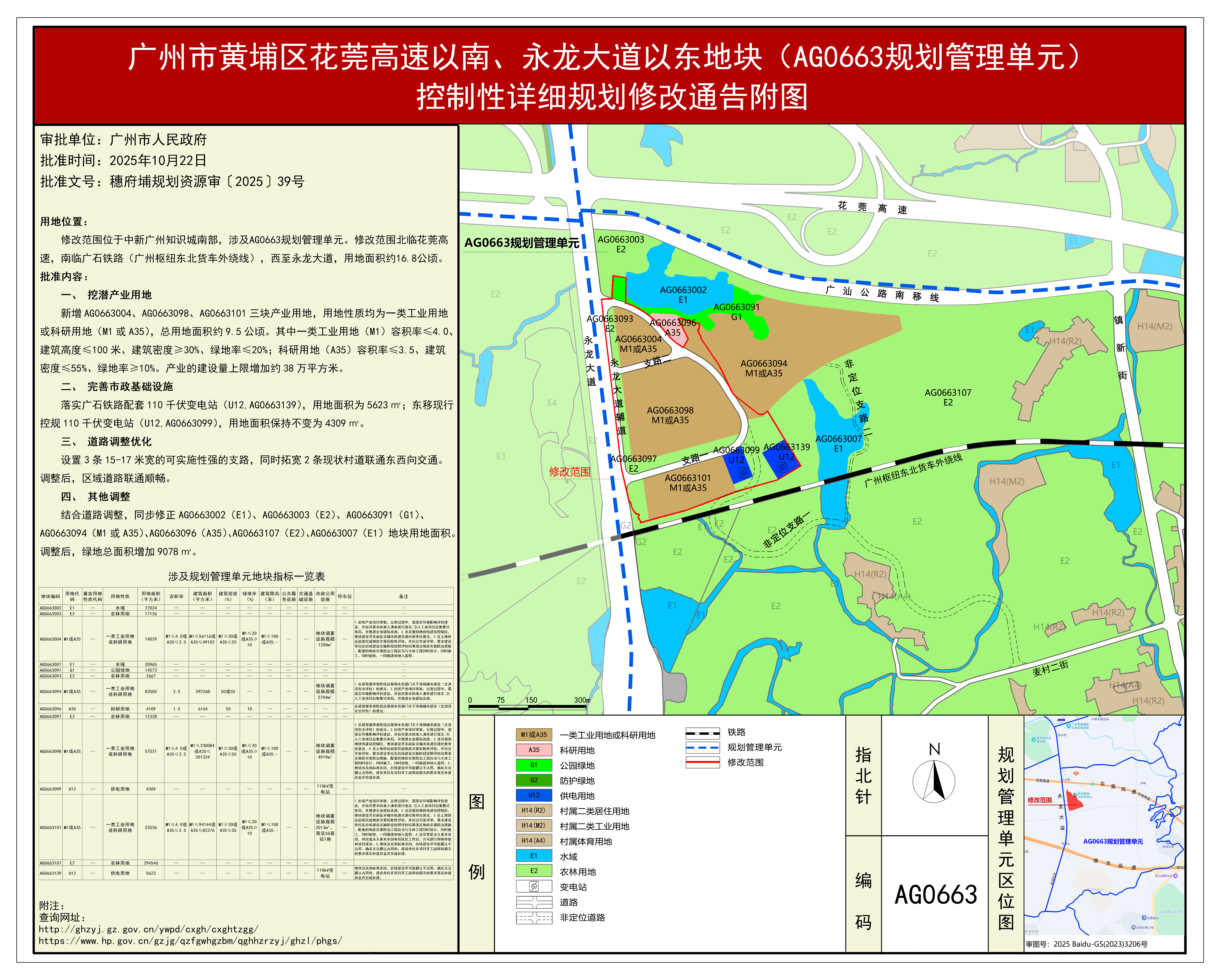 2.广州市人民政府关于同意广州市黄埔区花莞高速以南、永龙大道以东地块(AG0663规划管理单元)控制性详细规划修改的批复(穗府埔规划资源审〔2025〕39号)