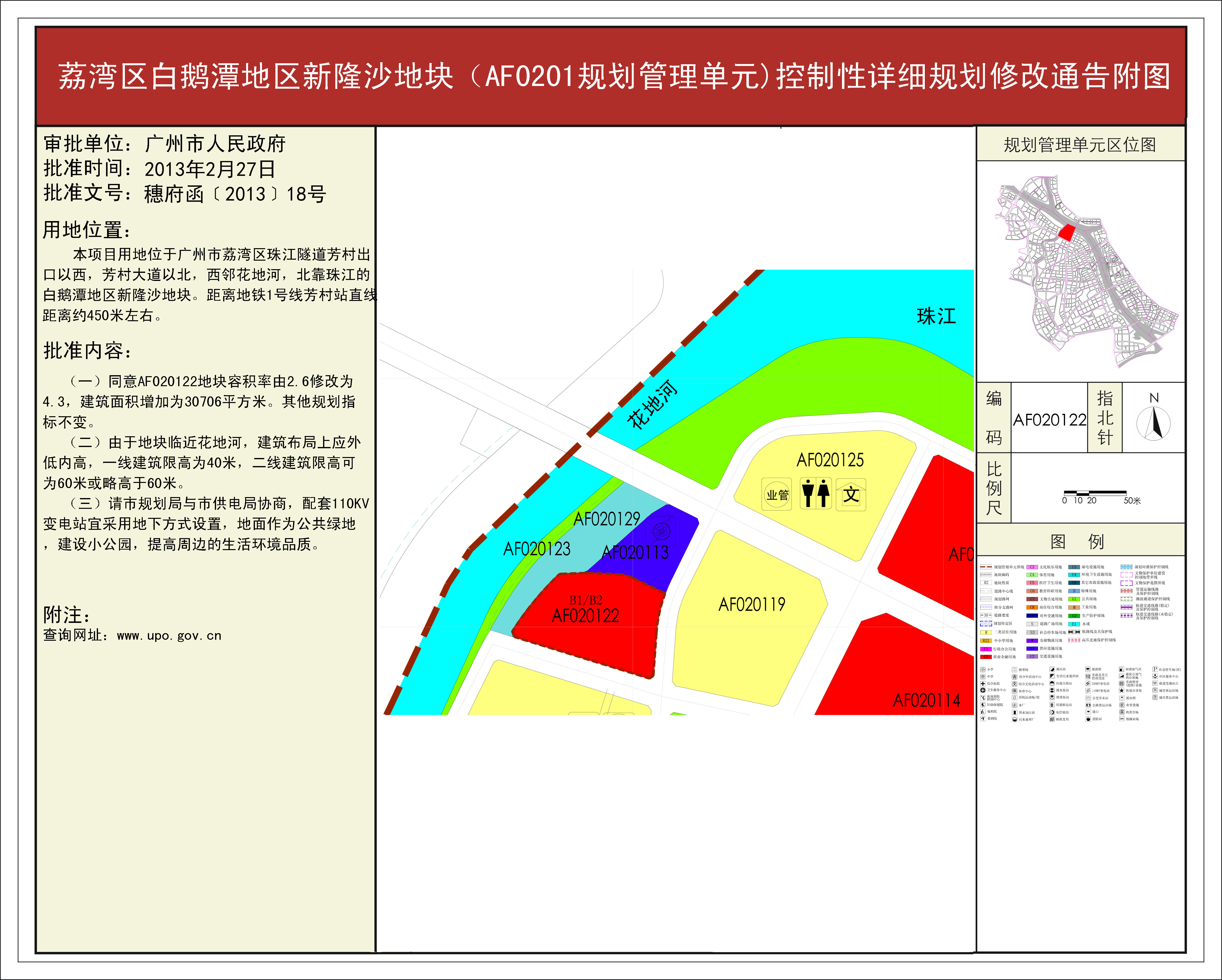荔湾区白鹅潭地区新隆沙地块(AF0201规划管理单元)控制性详细规划修改通告