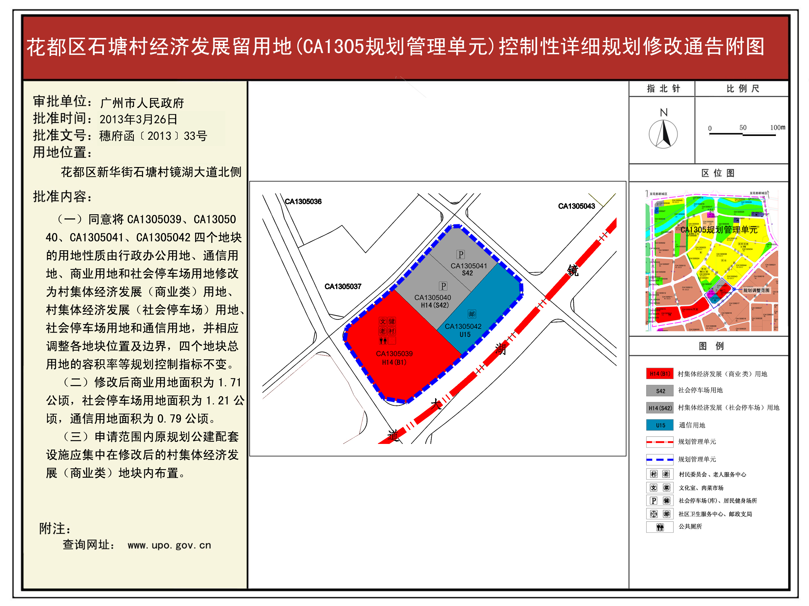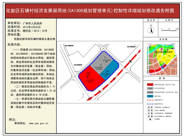花都区石塘村经济发展留用地(CA1305规划管理单元)控制性详细规划修改通告