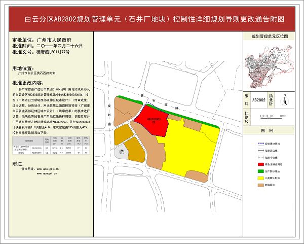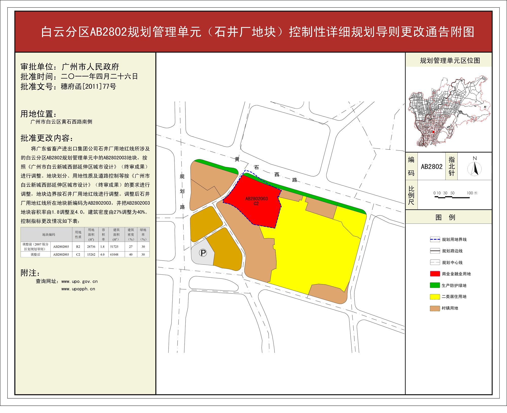 白云分区AB2802规划管理单元(石井厂地块)控制性详细规划导则更改
