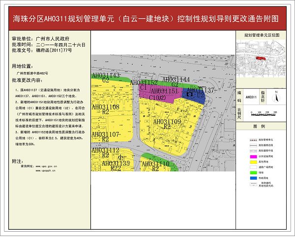 海珠分区AH0311规划管理单元(白云一建地块)控制性详细规划导则更改