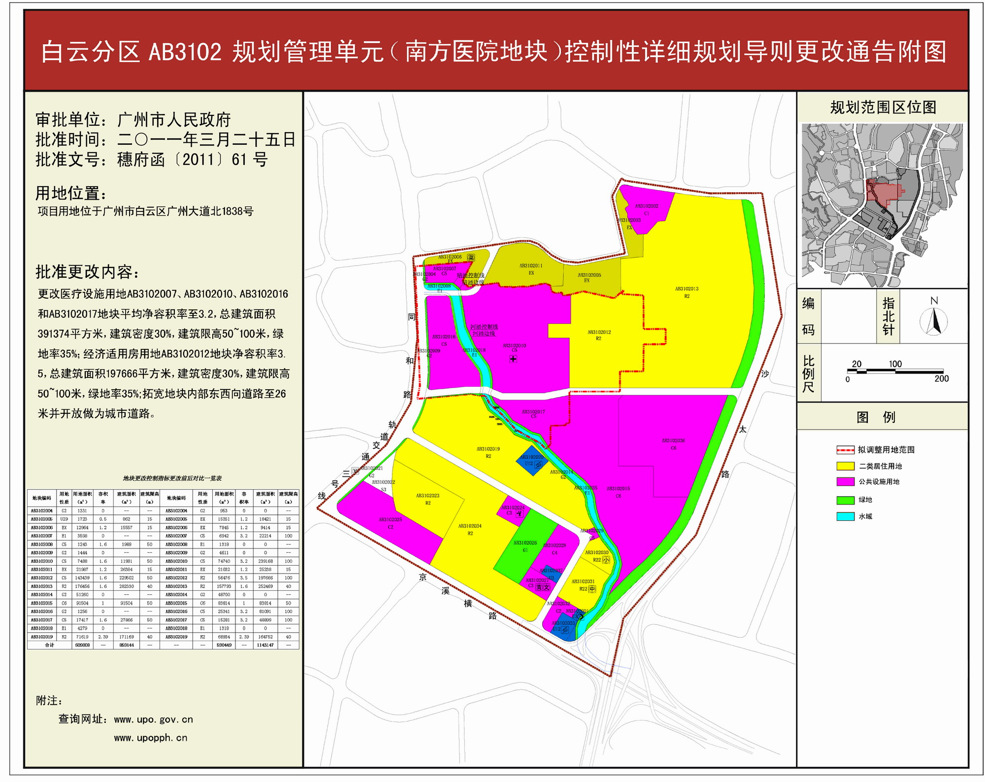 白云分区AB3102规划管理单元(南方医院地块)控制性详细规划导则更改