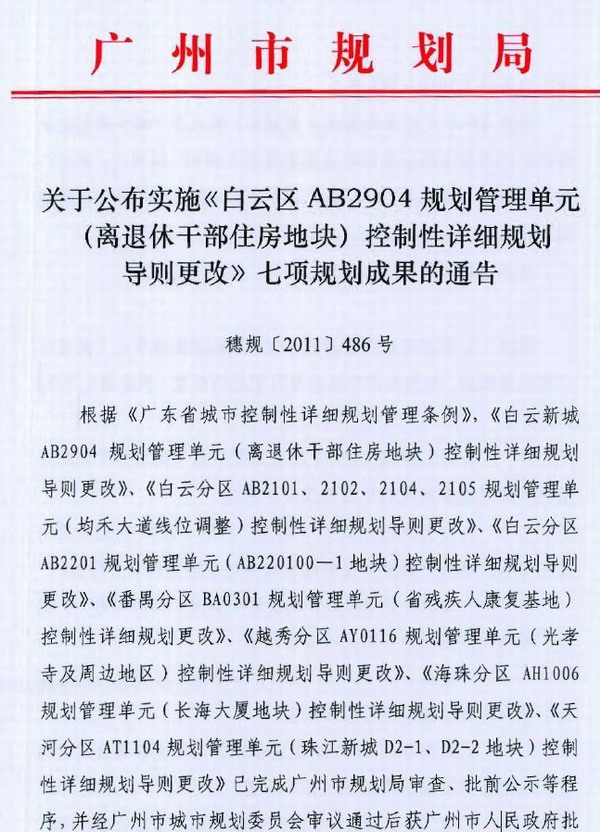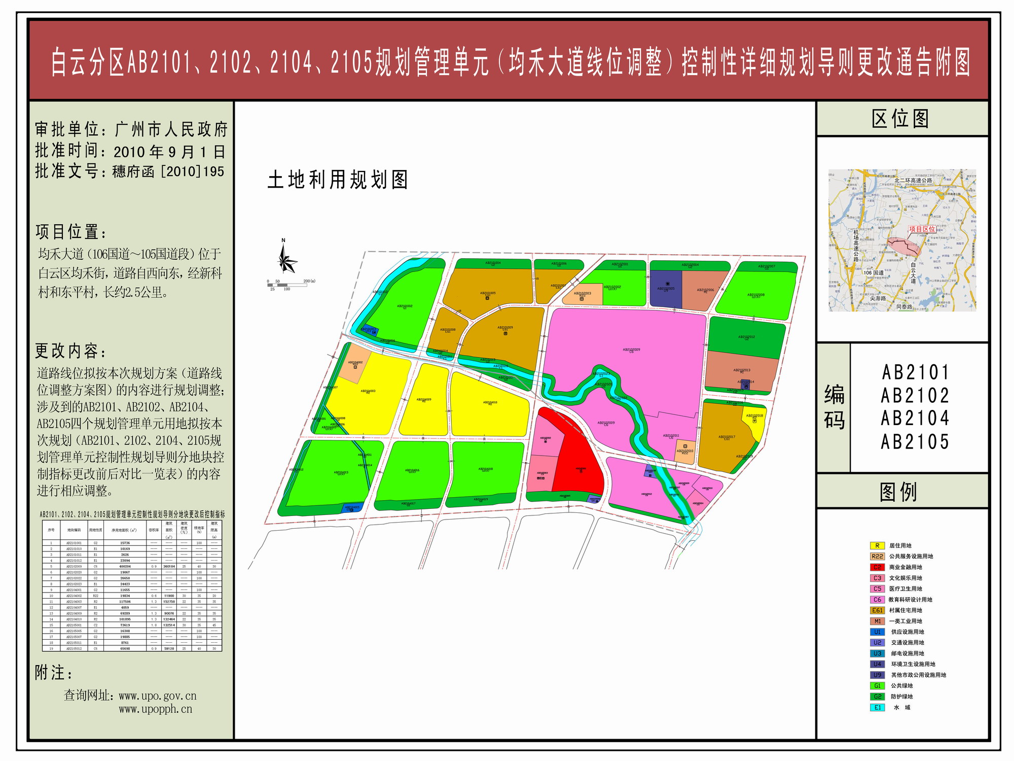 白云分区AB2101、2102、2104、2105规划管理单元(均禾大道线位调整)控制性详细规划导则更改