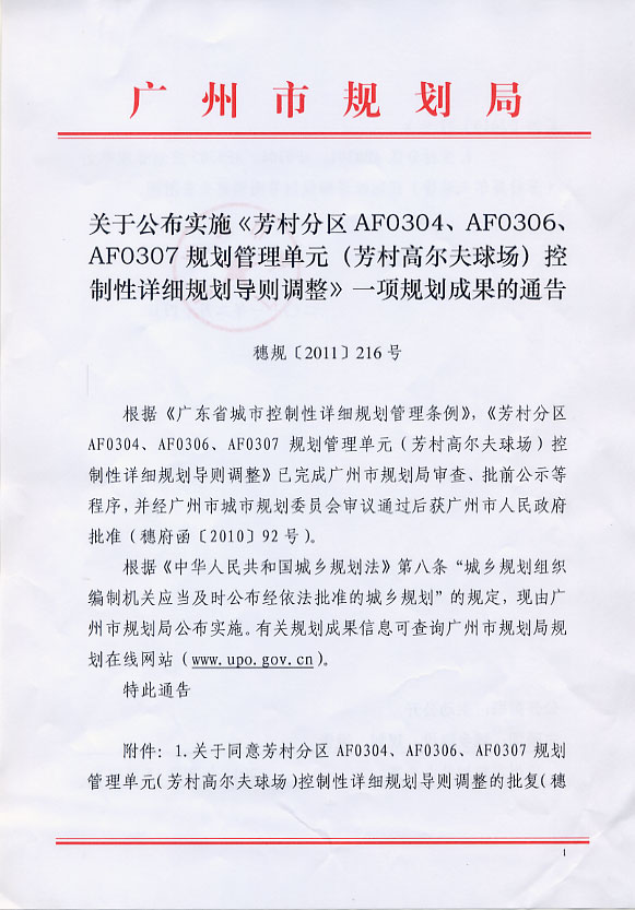 芳村分区AF0304AF0306AF0307规划管理单元(芳村高尔夫球场)控制性详细规划导则调整