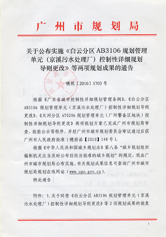 白云分区AB3106规划管理单元(京溪污水处理厂)控制性详细规划导则更改