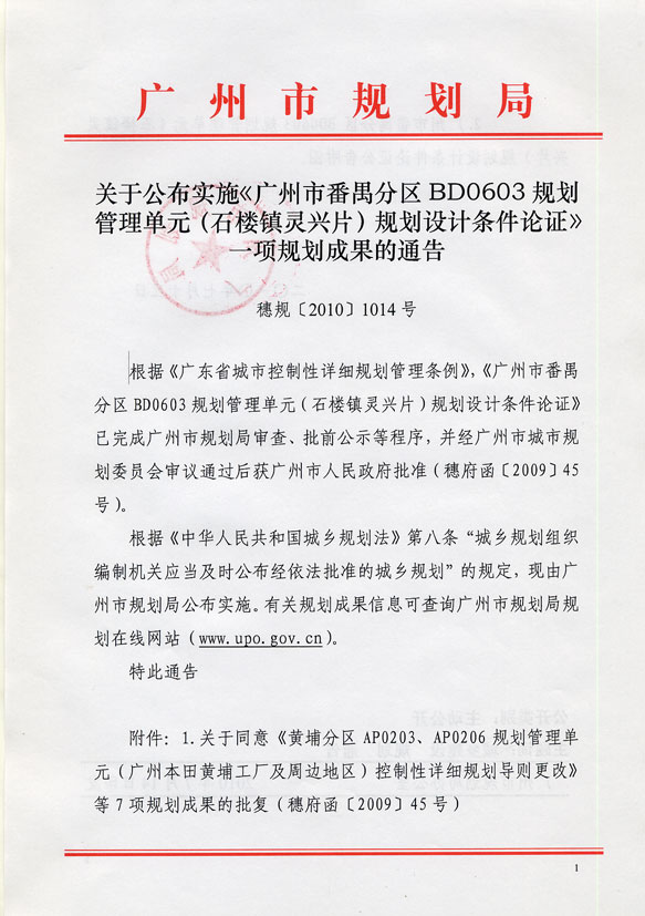 广州市番禺分区BD0603规划管理单元(石楼镇灵兴片)规划设计条件论证