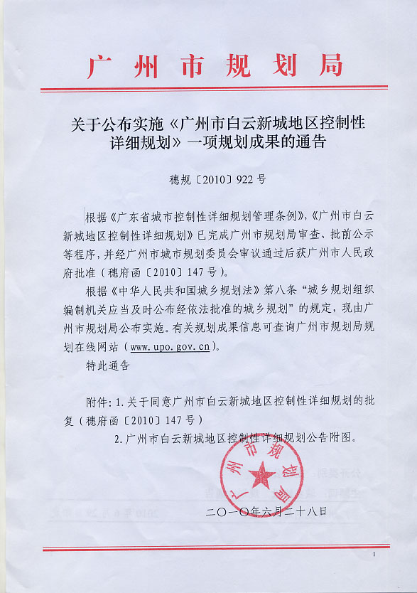 广州市白云新城地区控制性详细规划