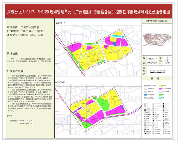 海珠分区AH0117、AH0120规划管理单元(广州造船厂沙园宿舍区)控制性详细规划导则更改