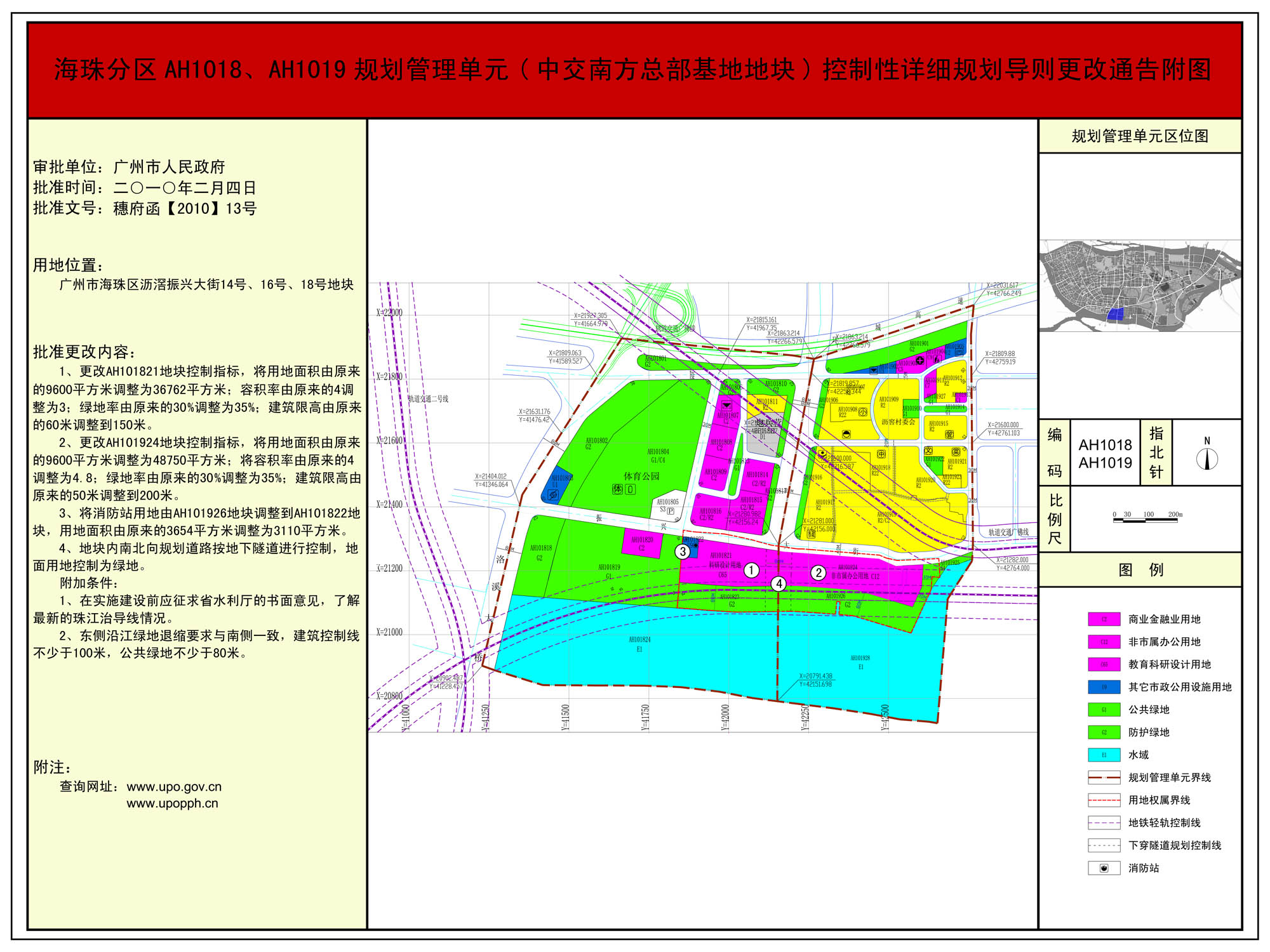 海珠分区AH1018、AH1019规划管理单元(中交南方总部基地地块)控制性详细规划导则更改