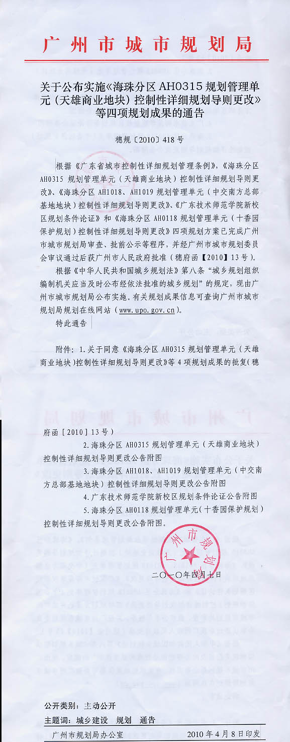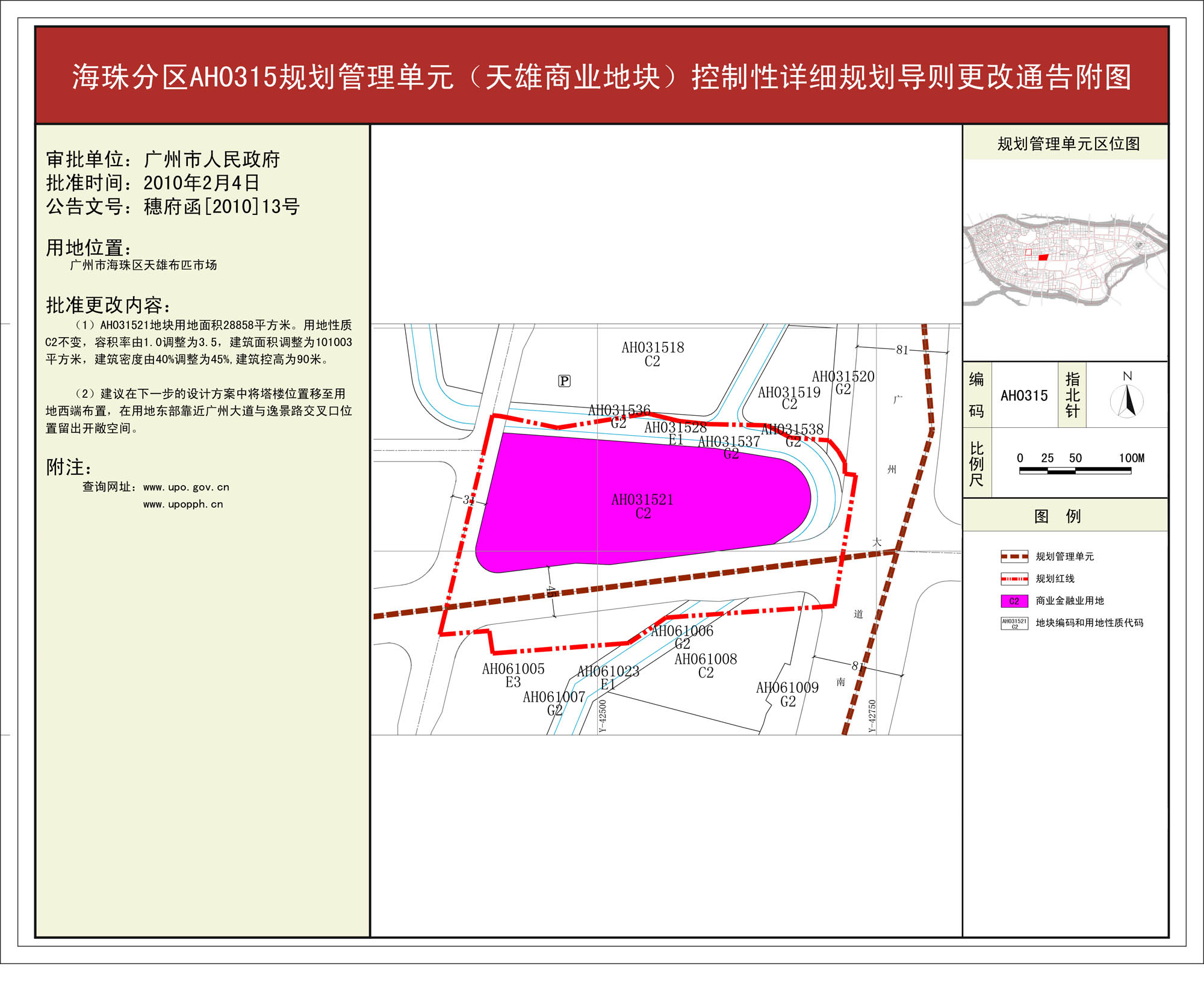 海珠分区AH0315规划管理单元(天雄商业地块)控制性详细规划导则更改