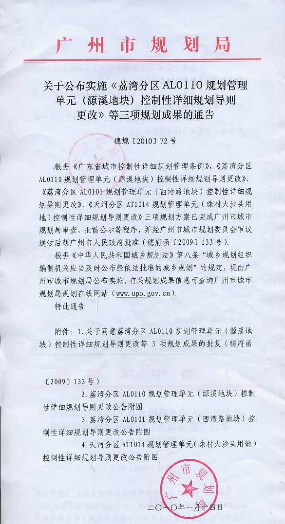 荔湾分区AL0101规划管理单元(西湾路地块)控制性详细规划导则更改