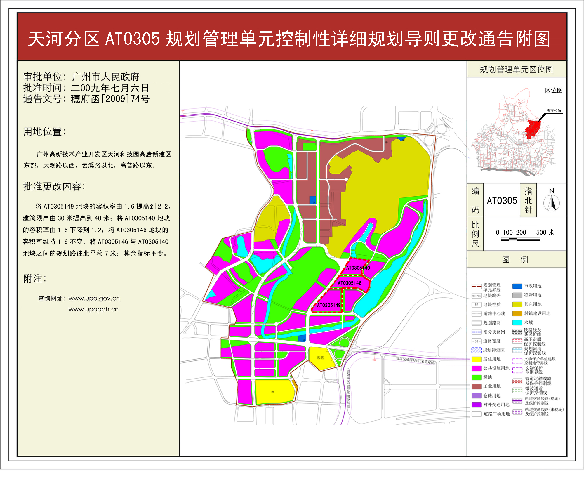 根据《广东省城市控制性详细规划管理条例》,《荔湾分区AF0606、AF0607规划管理单元(医药港地区)控制性详细规划》、《天河分区AT0305规划管理单元(广州高新集团用地)规划设计条件论证》、《耀华国际教育学校花都校区用地选址论证》和《白云分区AB2711规划管理单元局部(张村地块)控制性详细规划导则更改》四项规划方案已完成广州市规划局审查、批前公示等程序,并经广州市城市规划委员会审议通过后获广州市人民政府批准(穗府函[2009]74号。