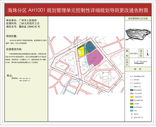 海珠分区AH1001规划管理单元(中国电信广州数据中心用地)控制性详细规划导则更改