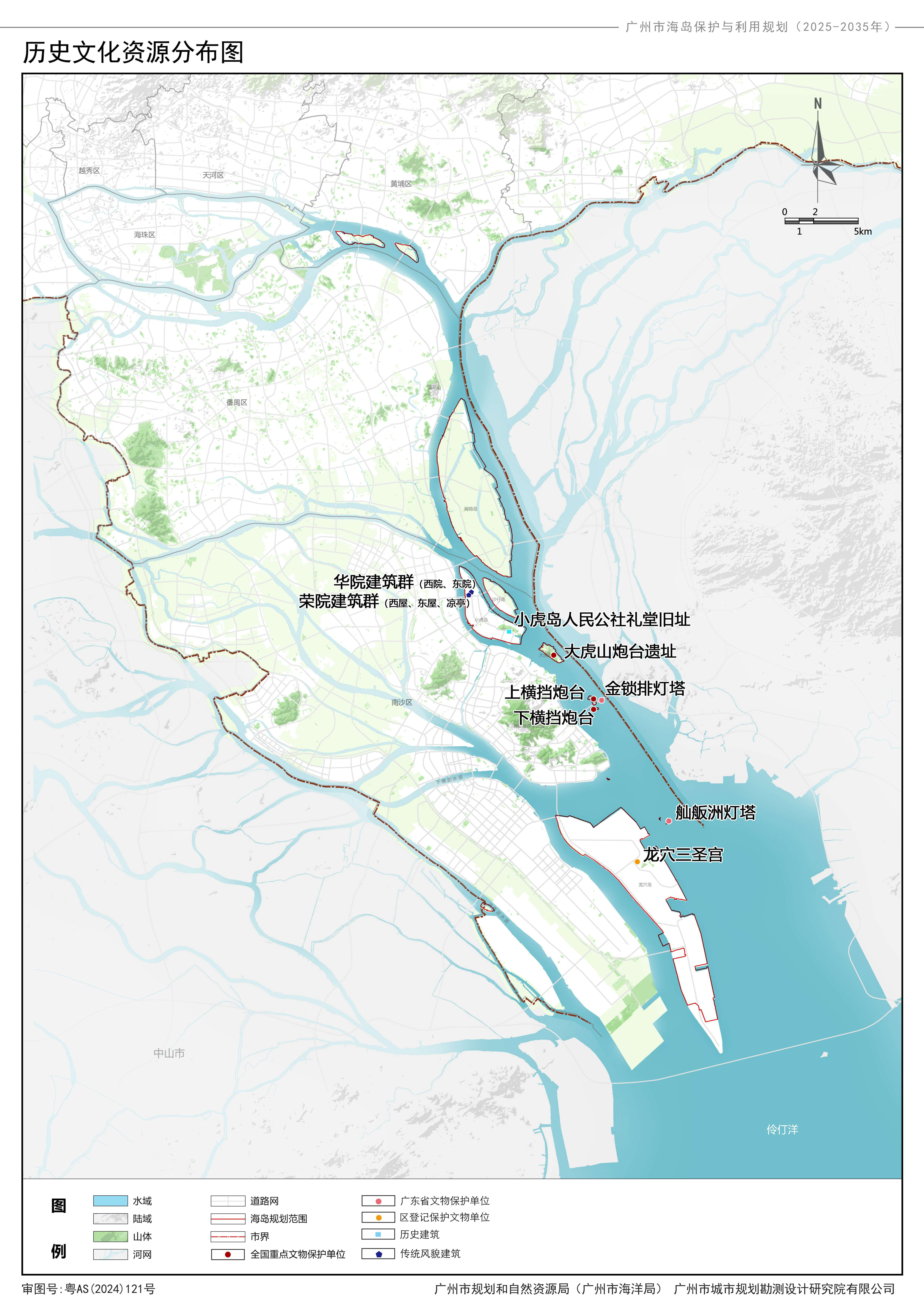 广州市海岛现存历史文化资源包括1处全国重点文物保护单位、2处省级文物保护单位、1处区登记保护文物单位、1处历史建筑和2处传统风貌建筑。