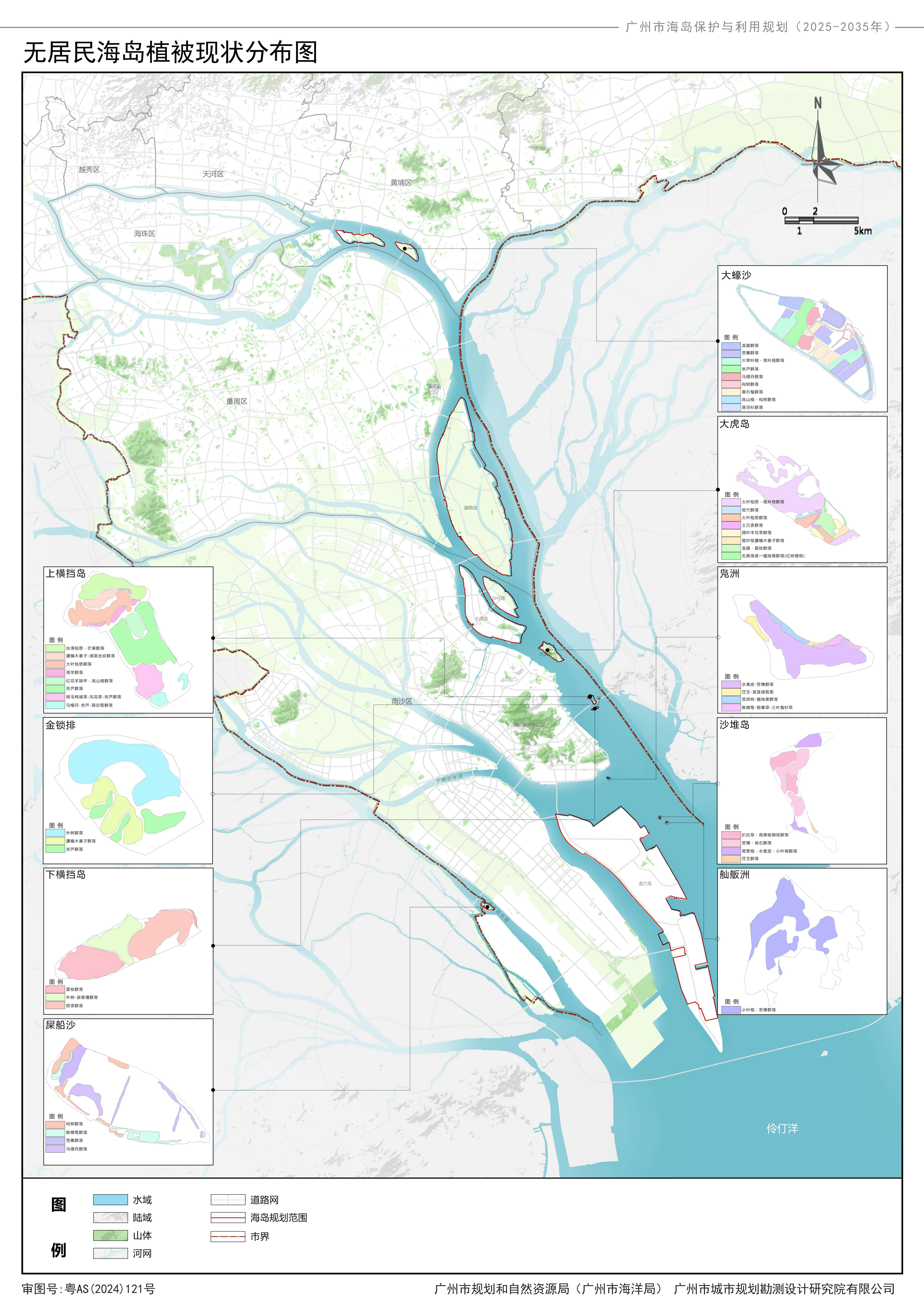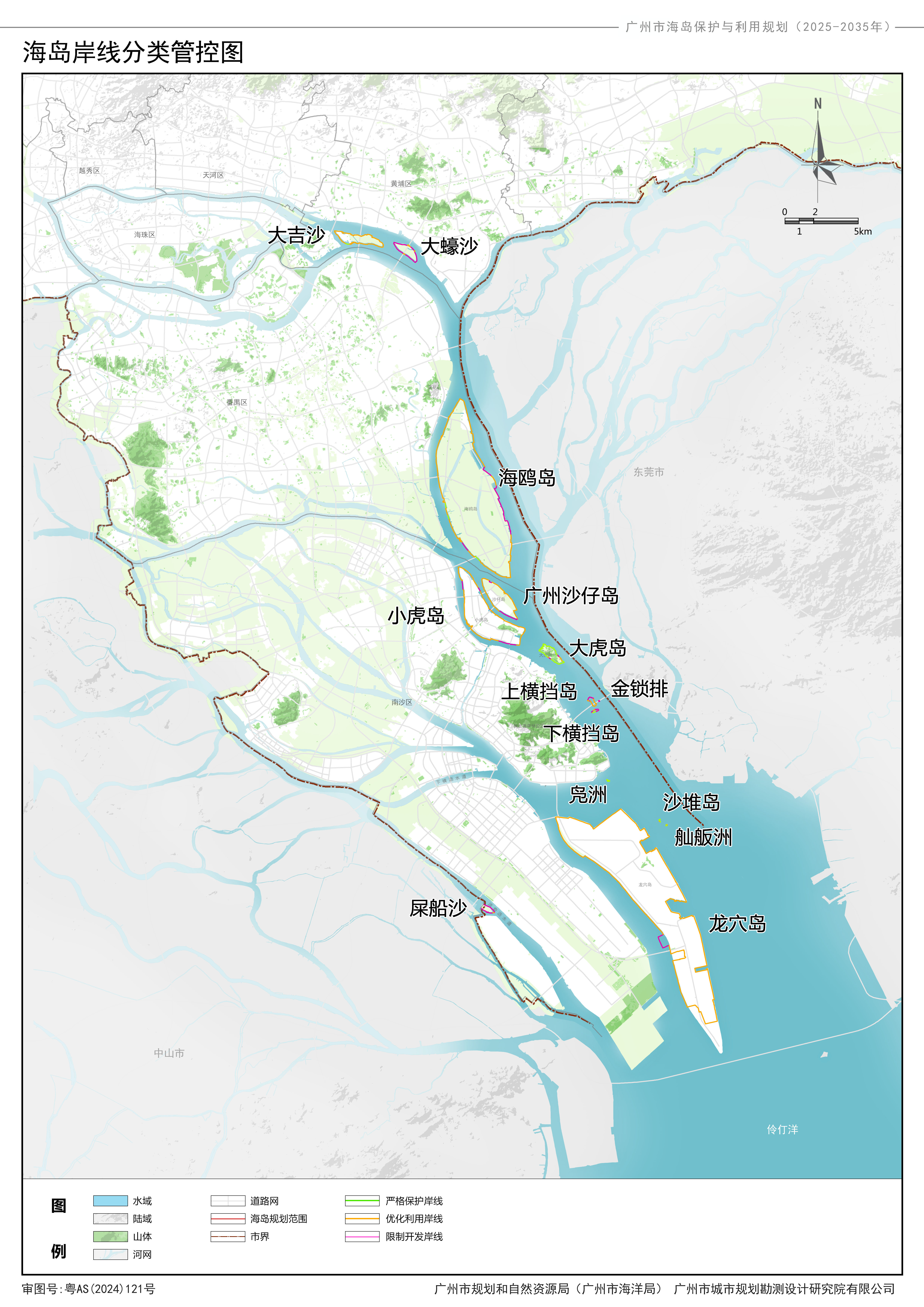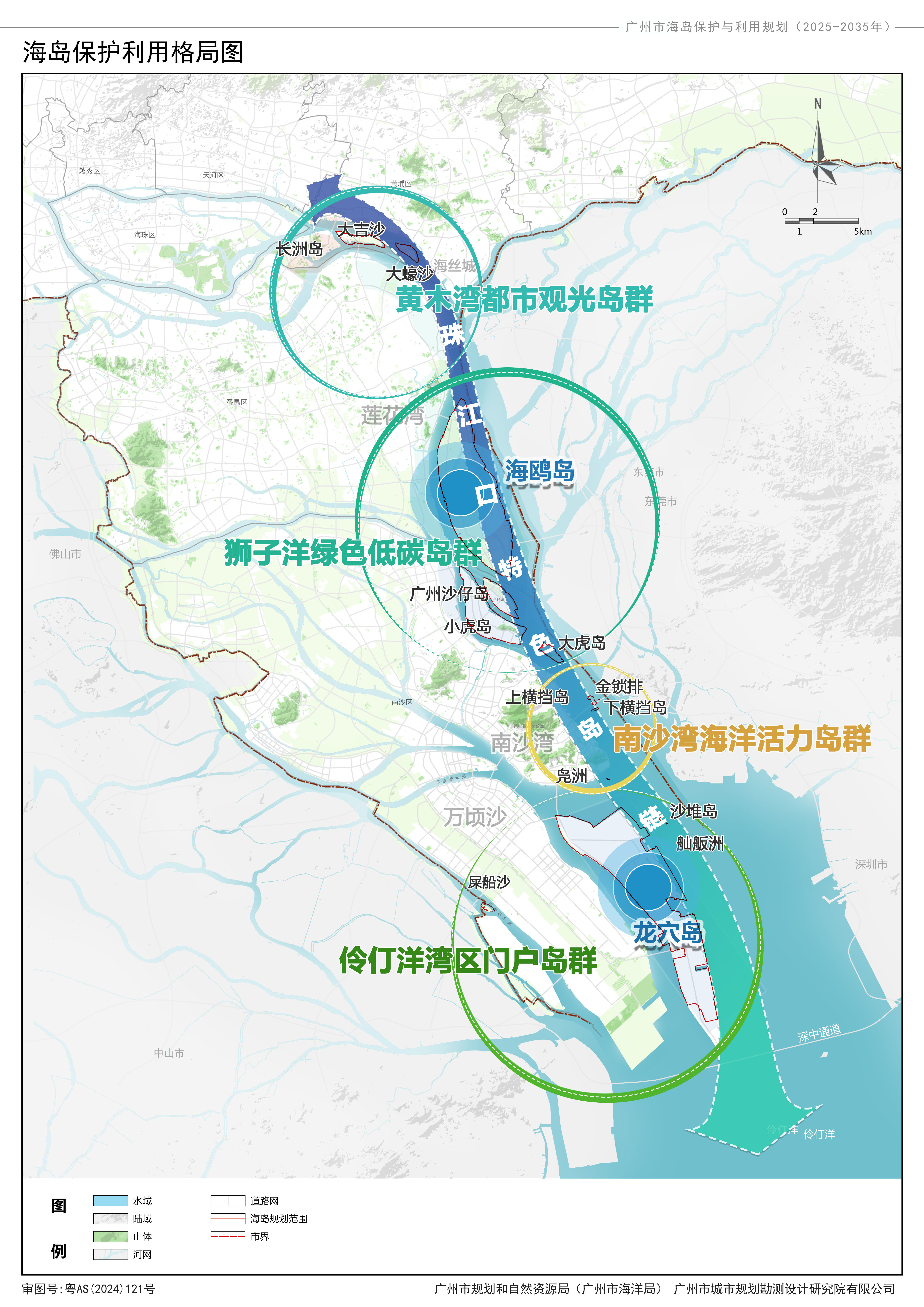 从全市来看,向海发展的良好态势为海岛保护利用提供新场景。2024年9月,国务院批复的《广州市国土空间总体规划(2021—2035年)》,首次赋予广州“彰显海洋特色的现代化城市”的城市性质,提出构建珠江口特色岛链,强化14个海岛的分类保护利用。《广州面向2049的城市发展战略》提出打造“全球领先的海洋之城”,系统谋划海岛的整体保护利用。2025年2月,《广州市建设海洋创新发展之都规划》印发,提出构建“一带三区,串珠成链”的总体空间格局,促进海洋创新优势资源向滨海重点片区及园区集中。2025年3月,广州申报的“珠江三角洲河口海洋生态修复示范”项目成功获批纳入联合国“海洋十年”项目,致力积极探索河口型城市“城海共生”海洋生态保护修复模式。