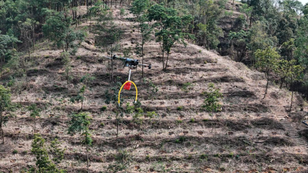 山地造林曾长期受困于运输难题:山路陡峭狭窄,车辆难达;人力搬运效率低、成本高,遇雨天更添安全隐患。如今,无人机“空中运输队”的出现彻底改变了这一局面。
