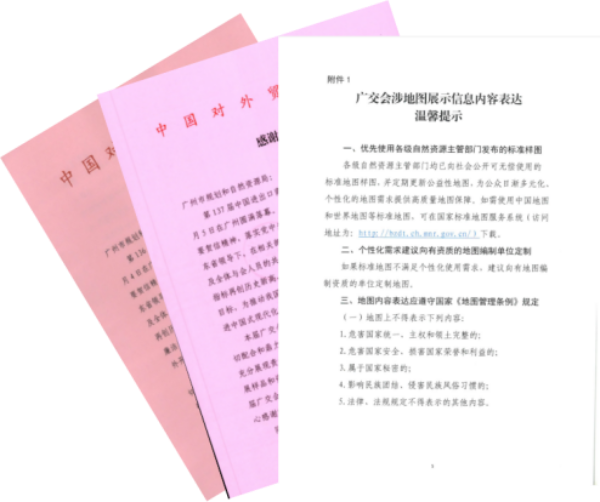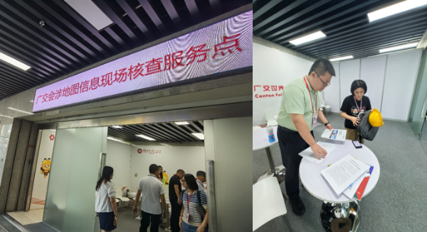 在此基础上,省市两级技术单位进一步将“监管”与“服务”深度融合,通过“线上+线下”“事前+事中”“核查+服务”的“一站式”工作法,构建全流程全方位保障模式。展前,联合发布《广交会涉地图展示信息内容表达温馨提示》,同步开通线上预审“绿色通道”,企业无需线下跑办,仅需线上提交电子版地图,短时间内就能收到专业反馈与合规建议,从源头规避地图内容表示不规范的问题;展中,在展馆核心区域设立“地图核查服务点”,省、市技术人员驻场办公,既能快速响应企业临时用图审核需求,也能通过动态巡查排查展区内的“问题地图”,做到“即查即改、当场解决”;展后,对发现的问题分类建立台账,联合展会主办方督促企业完成整改,形成“技术支撑—问题发现—整改落实”的闭环管理。