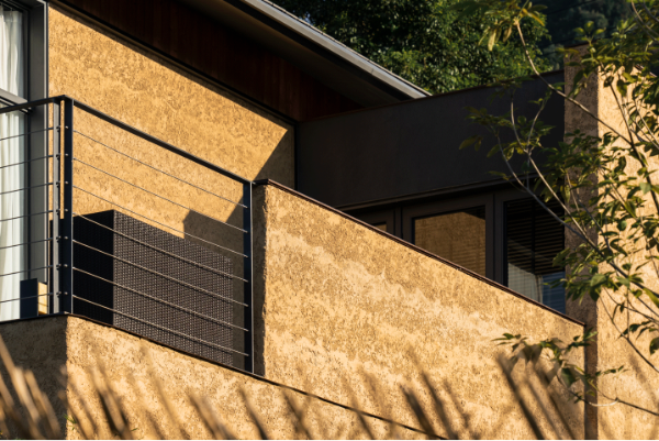 为重现客家聚落的原始风貌,新建客房采用仿夯土涂料呼应传统,同时以钢筋混凝土为骨架,用片墙承托屋面的结构语言实现现代加固。屋顶设计复刻了原始村落的韵律,几何化的三角坡顶以不同角度倾斜,覆盖本地陶土瓦,日晒雨淋后渐成与山林相融的青灰色。