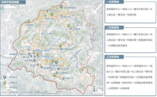 作品《乘风扬粤韵·翠影韵南乡——从化国际赛车与产业小镇规划设计方案》策划差异化的游览线路,满足不同游客深度游览体验需求,此外依托骏永教育基地,制定体育托管训练、特色产品与增值服务等多元化的运营方案,全面提升项目的市场吸引力与持续运营能力。