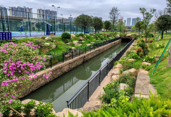 以全民运动、全龄友好为理念,融合生态保护与市民需求,公园设置徒步步道、球类运动场地、文化展示区等功能区域,除传统健身器械外,还植入高标准专业运动场地,实现从单纯散步、休闲、游玩到全民运动的功能升级。公园建设健身步道长度约10公里,可作为半程马拉松活动的载体。公园新建3个篮球全场、3个篮球半场、3个羽毛球场、1个足球场、2个滑板场,可承接徒步、篮球、羽毛球、网球、足球、滑板等系列全民体育赛事活动。为满足不同人群需求,规划设计搭配2个驿站、1个淋浴间、3个儿童乐园、2个儿童沙池,为家长、老人和小朋友配套相应设施,让体育健康融入日常的同时促进代际融合与社交互动。公园所有场地均配备夜间照明系统,实现“昼赏花、夜运动”,打造全天候运动“主场”,花都城际公园正逐步成为周边居民最受欢迎的生态休闲运动长廊。