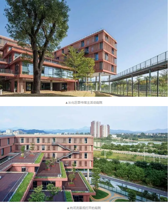 肖毅强:在绿色建筑方面,思考如何借鉴岭南传统建筑经验,结合现代建筑设计的方法,进行绿色建筑设计尝试。以我主持设计的从化区图书馆为例,通过运用骑楼、架空层、庭院、天井、冷巷等方式、运用院落和廊道组织建筑空间布局,形成具有良好通风采光条件的建筑群体关系,并有效地改善建筑环境的热舒适性。立面上采用建筑复合表皮设计,有效地减少辐射热又能为阅读环境引入漫射自然光,以经济适用的被动策略实现建筑的可持续性。