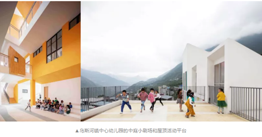 在教育建筑方面,我们从08年开始参与在中国贫困地区援助建设幼儿园。近几年在四川雅安设计了几座幼儿园,我们作为全过程咨询设计的角色参与到项目中。从项目前期开始,通过调研确定项目的规模,任务书,参与建筑设计,跟踪建设过程,直至交付使用,整个过程需要综合地考虑各种因素。在四川雅安的乌斯河中心幼儿园,我们设计了多层的教学结合活动的平台、通过中庭组织共享性功能,如小剧场等,布置了多级兼具观景和活动功能露台,营造对乡村儿童友好的建筑环境。作为教育建筑设计师,我们首先要充分理解儿童这个群体,才能为小朋友创造健康成长的环境。