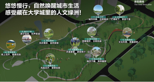 二是尊重自然,融合人文。尊重原有地形地貌及场地特征,将树木保留作为场地造景基础,建成后树木成为人们亲近自然的活动原点,古树遍布公园、学校,沉淀百年历史文脉。公园紧邻暨南大学、华南理工大学等多所高等院校,打造艺术草甸、创意草坪,借助浓郁的高校文化氛围,提升公园人文艺术气息。