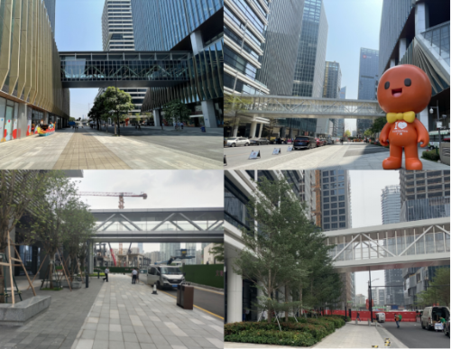 互联网创新集聚区的空中连廊已初步形成,整个琶洲西区全部完工后将形成总数15 条、总长度逾1600米的空中连廊系统。通过公共垂直交通模块,空中连廊将与地面层、地下公共空间形成立体步行网络,链接各类商业商务功能空间和公共场所,构建创新资源集聚的骨架。