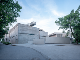 春阳台艺文中心的设计在吸收古村落与水相互映衬融合的环境特点的基础上,巧妙融入现代风格的设计手法。为了减小体量、压低高度以适应古村的空间尺度,采取了建筑室内地面下沉的方式,把接近一半的功能空间放在地下一层。分散的单元式布局与弧形的“楼”串联,围合出宜人的街巷与庭院,与古村的建筑尺度相得益彰。